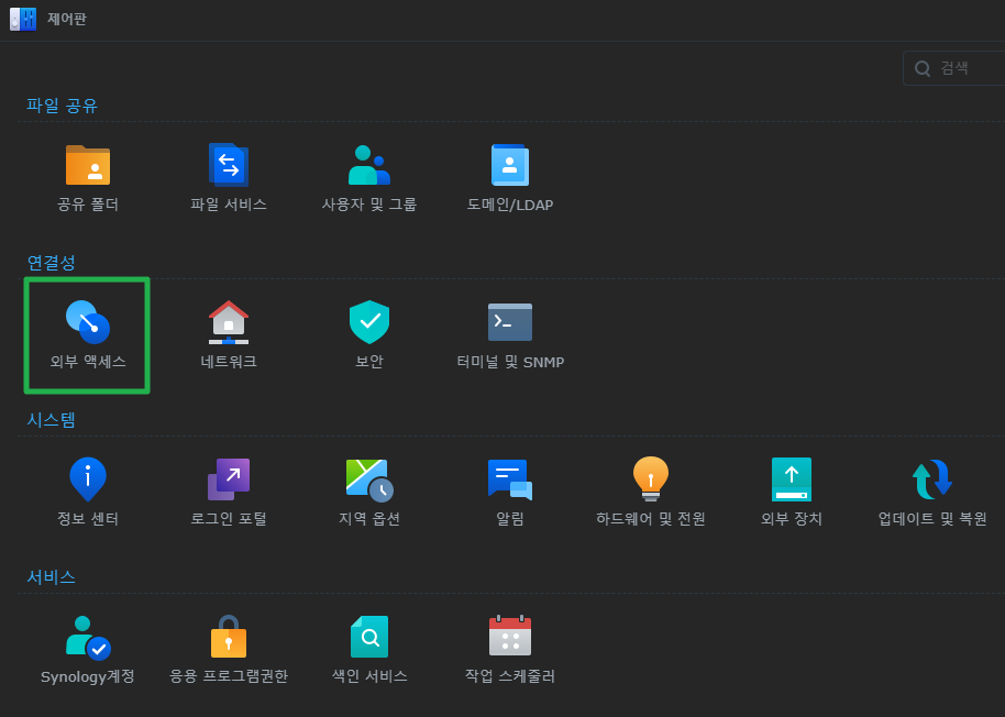 시놀로지의 제어판 > 외부 액세스에 진입합니다.