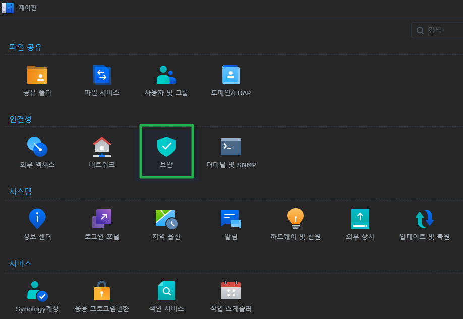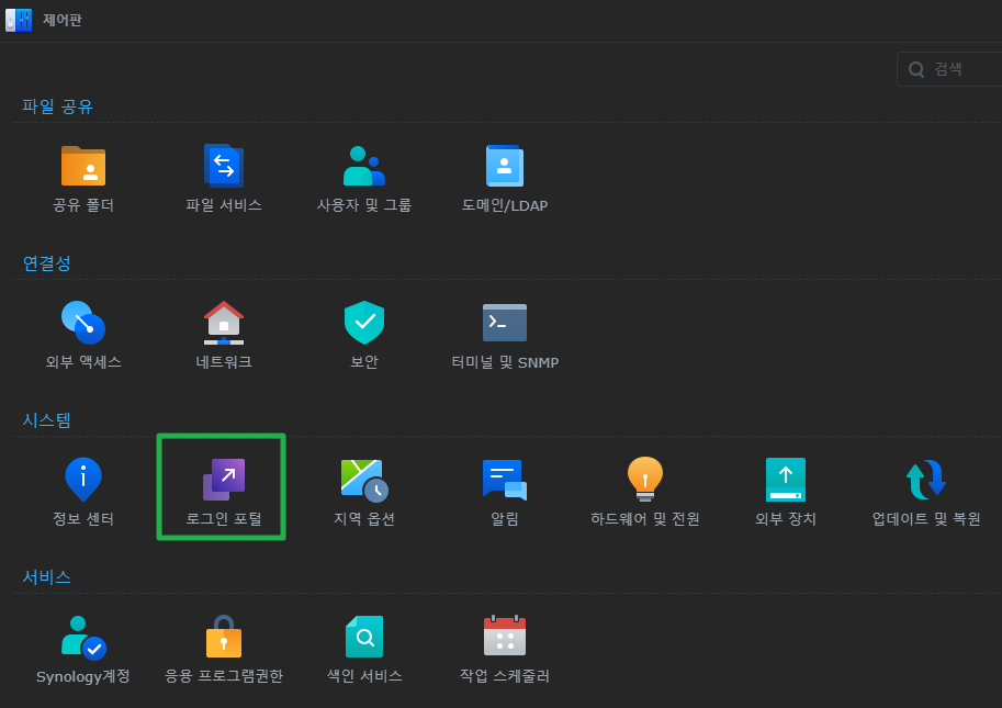 시놀로지의 제어판 > 로그인 포털에 진입합니다.