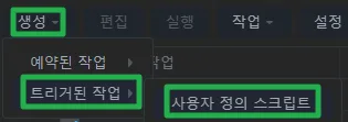 생성 > 트리거된 작업 > 사용자 정의 스크립트를 클릭합니다.