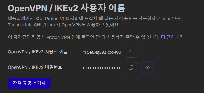 명령어를 정상적으로 실행한 경우, ovpn 파일의 아이디와 비밀번호를 입력해야 합니다.
