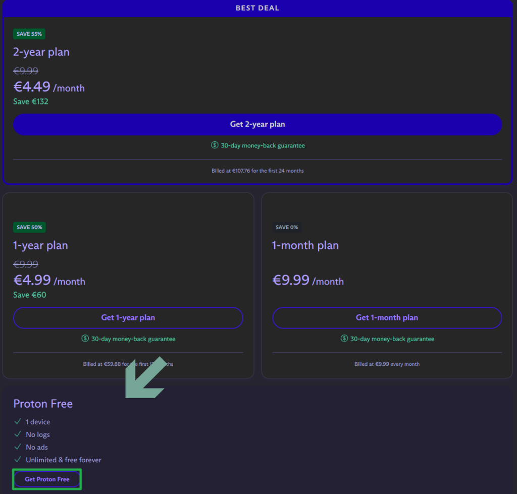 스크롤을 내려 Proton Free를 선택합니다.