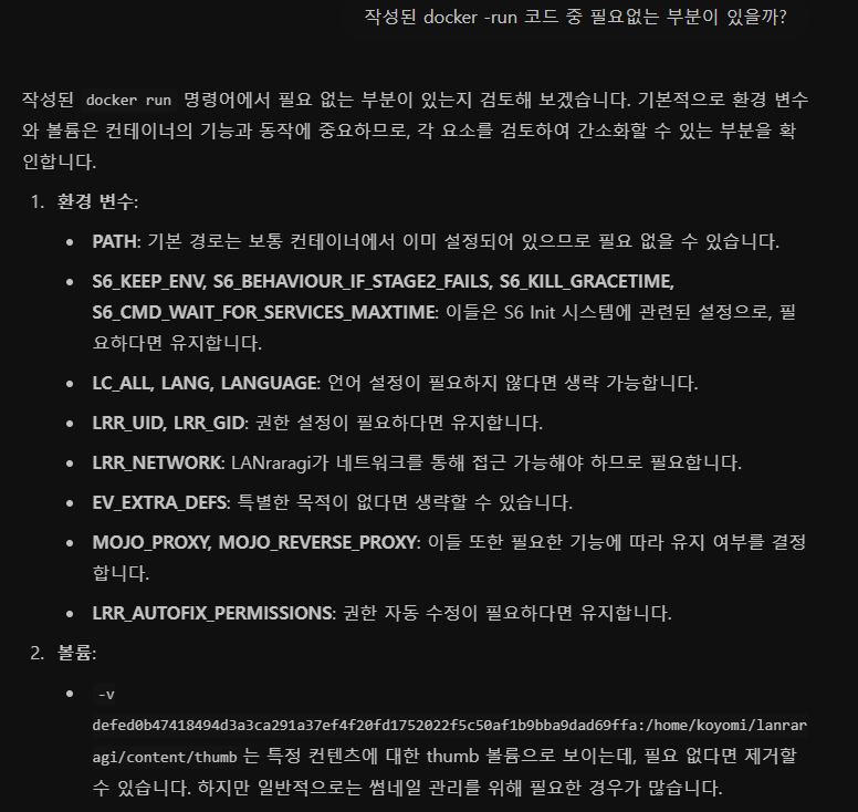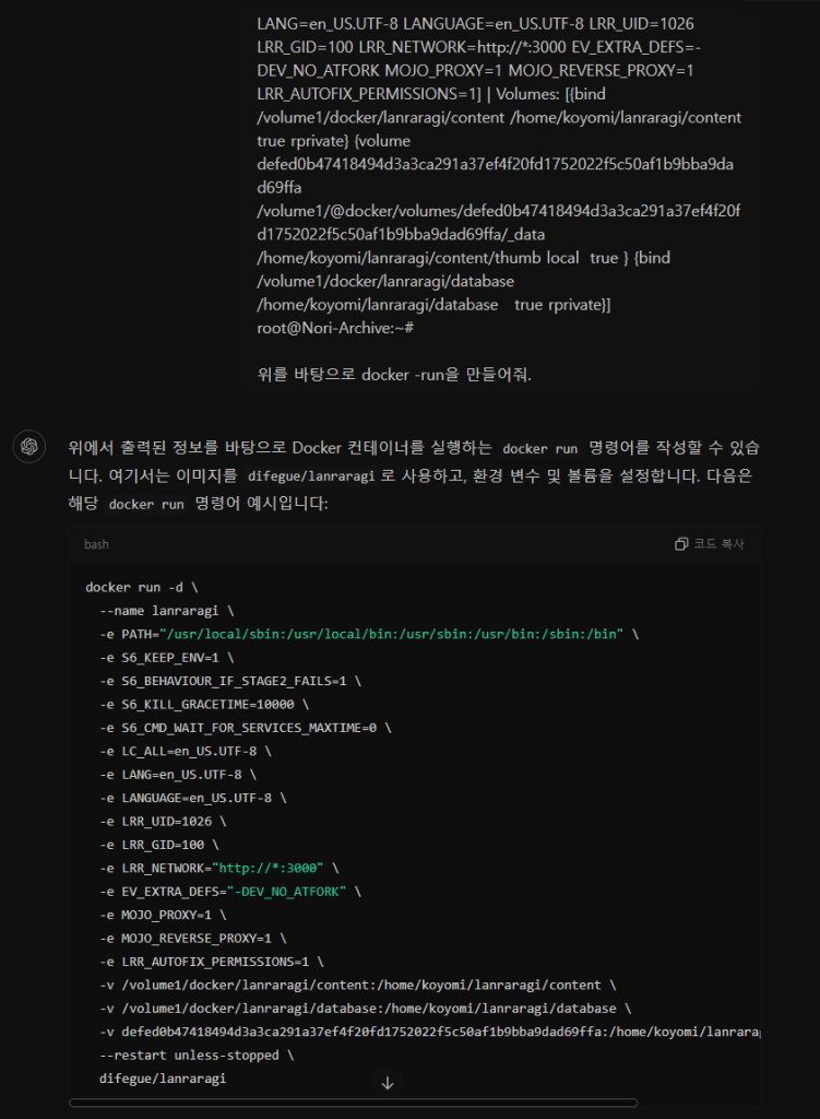 Chat GPT한테 docker -run으로 만들어 달라고 합시다.