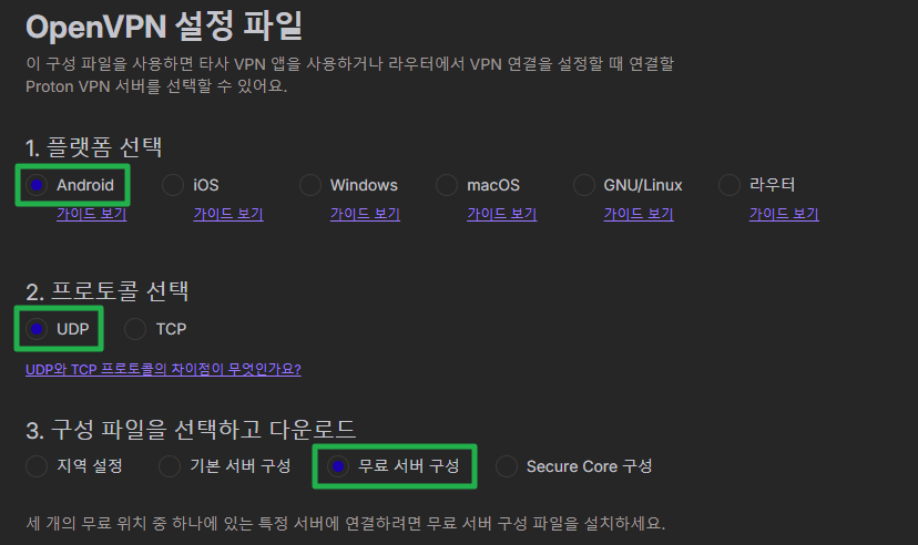 Proton VPN ovpn 파일 다운로드