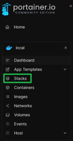 Portainer의 좌측에서 Stacks에 진입합니다.