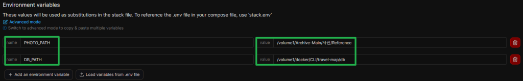 - 필자의 경우 /volume1/docker/CLI/travel-map/db