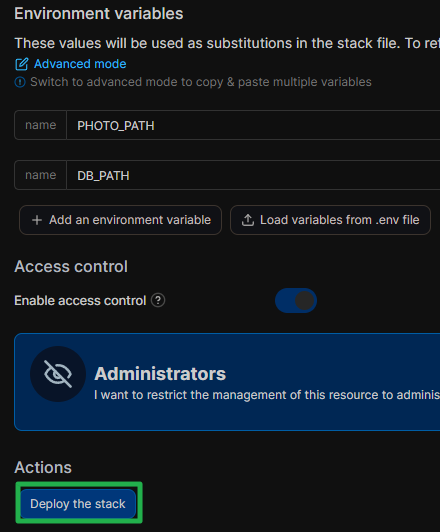 하단의 Deploy the stack 버튼을 클릭합니다.