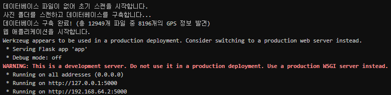 # 1. /data/photos.db 파일이 없으면 build_database.py를 실행하여 초기 DB를 생성합니다.