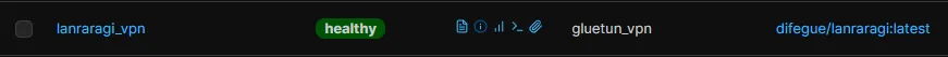 vpn_gateway와 추가한 컨테이너 (필자의 경우 lanraragi_vpn)가 healthy 상태로 존재하는지 확인합니다.