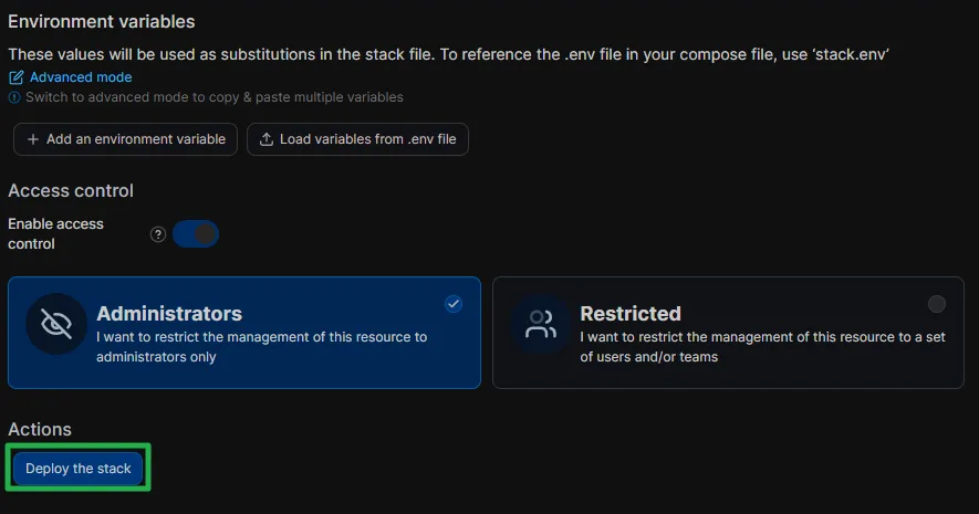 Deploy the stack을 클릭하여 Docker를 실행하고, 내부망IP:4533을 통해 접속할 수 있습니다.