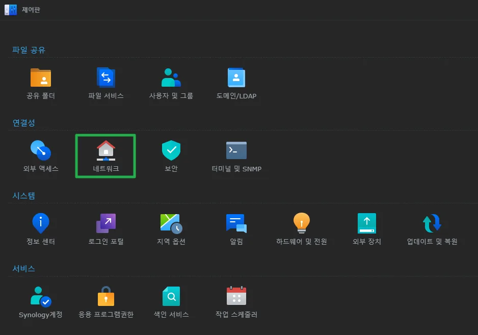 먼저 시놀로지 제어판 > 네트워크에 진입합니다.