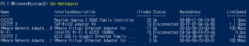 LinkSpeed 항목에서 Gbps 항목이 동일한지 확인해야 합니다.