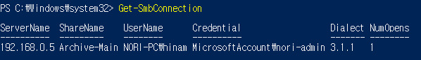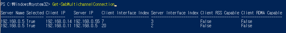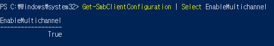 하지만 여전히 1Gbps의 속도로 작동한다면, 아래의 방법을 통해 SMB 멀티채널이 제대로 작동 중인지 확인해볼 수 있습니다.