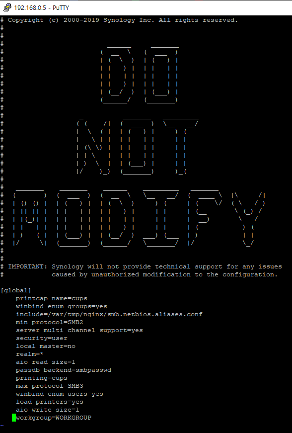 아래 명령어로 smb.conf 파일을 열어줍니다.