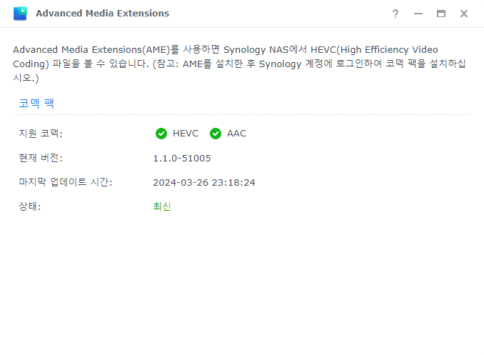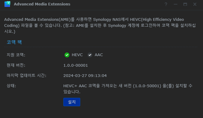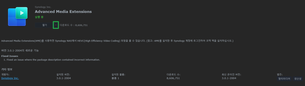 먼저, 패키지 센터에서 Advanced Media Extensions를 제거하고 설치합니다.