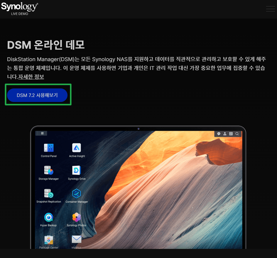 시놀로지 데모를 통해 직접 다운로드하려면, 아래 방법을 따라 진행해 주세요.