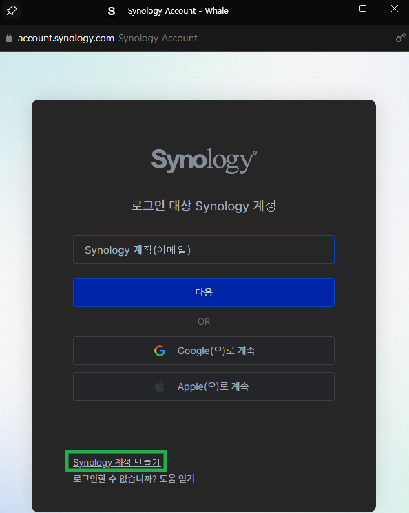 이후, 시놀로지에서 새 계정을 생성한 후 로그인합니다.