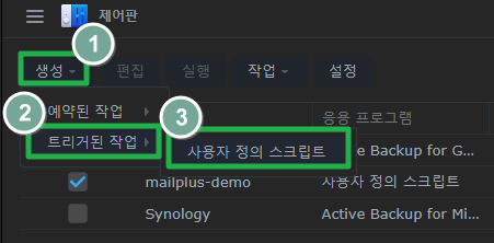 생성 > 트리거된 작업 > 사용자 정의 스크립트를 생성합니다.