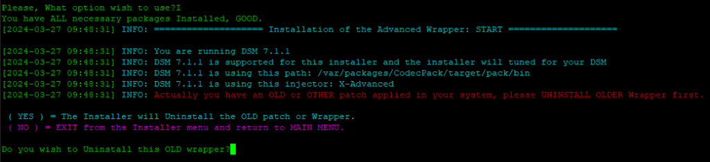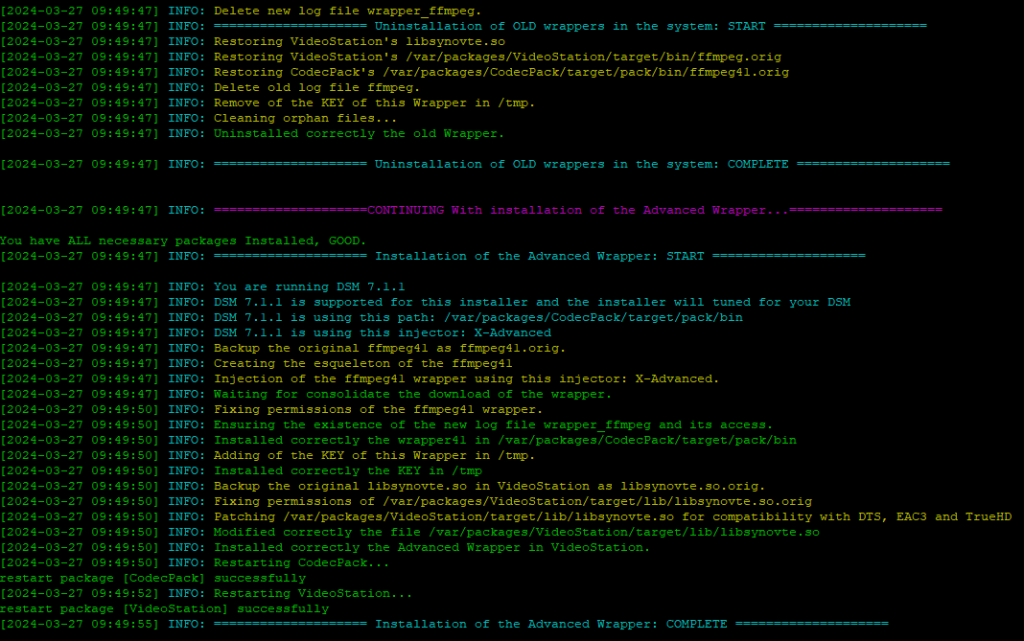 다음 명령어를 입력하여 Wrapper Video Station 패치를 진행합니다.