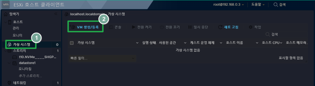 가상 시스템에서 VM 생성/등록을 클릭합니다.