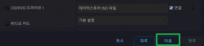 이후 CPU, 램, 하드 디스크 1의 용량을 사용자의 기호에 맞게 설정합니다.