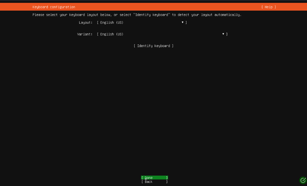 이 부분에선 제일 위의 Ubuntu Server에 체크하고, Done을 선택합니다.